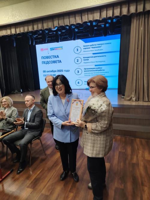 Глава муниципального округа Щукино Мария Ким поздравила педагогов с прошедшим Днём учителя и вручила благодарственные письма и памятные сувениры, побывав в каждой из щукинских школ: Курчатовской школе, школах № 1874, № 1210 и № 1212 Щукино, а также в Медицинском колледже № 5 и музыкальном театре «Домисолька».