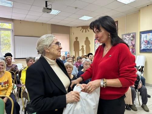 После выступления артистов глава муниципального округа Марьина роща Екатерина Игнатова вместе с муниципальным депутатом, исполнительным секретарём местного отделения партии «Единая Россия» Оксаной Епифановой и муниципальным депутатом, руководителем Центра московского долголетия «Марьина роща» Викторией Кузьминой вручили юбилярам памятные подарки и пообщались в дружеской атмосфере.