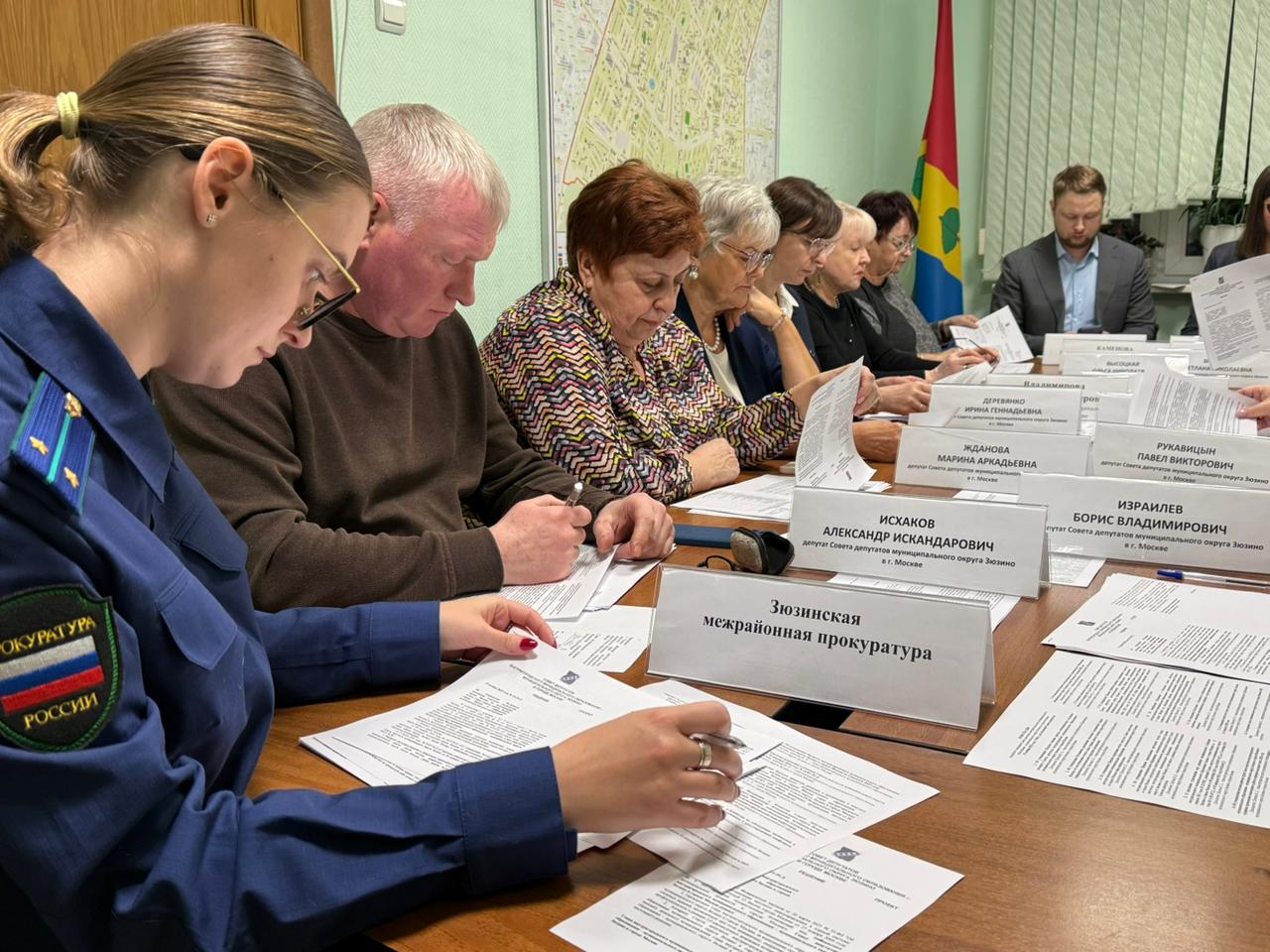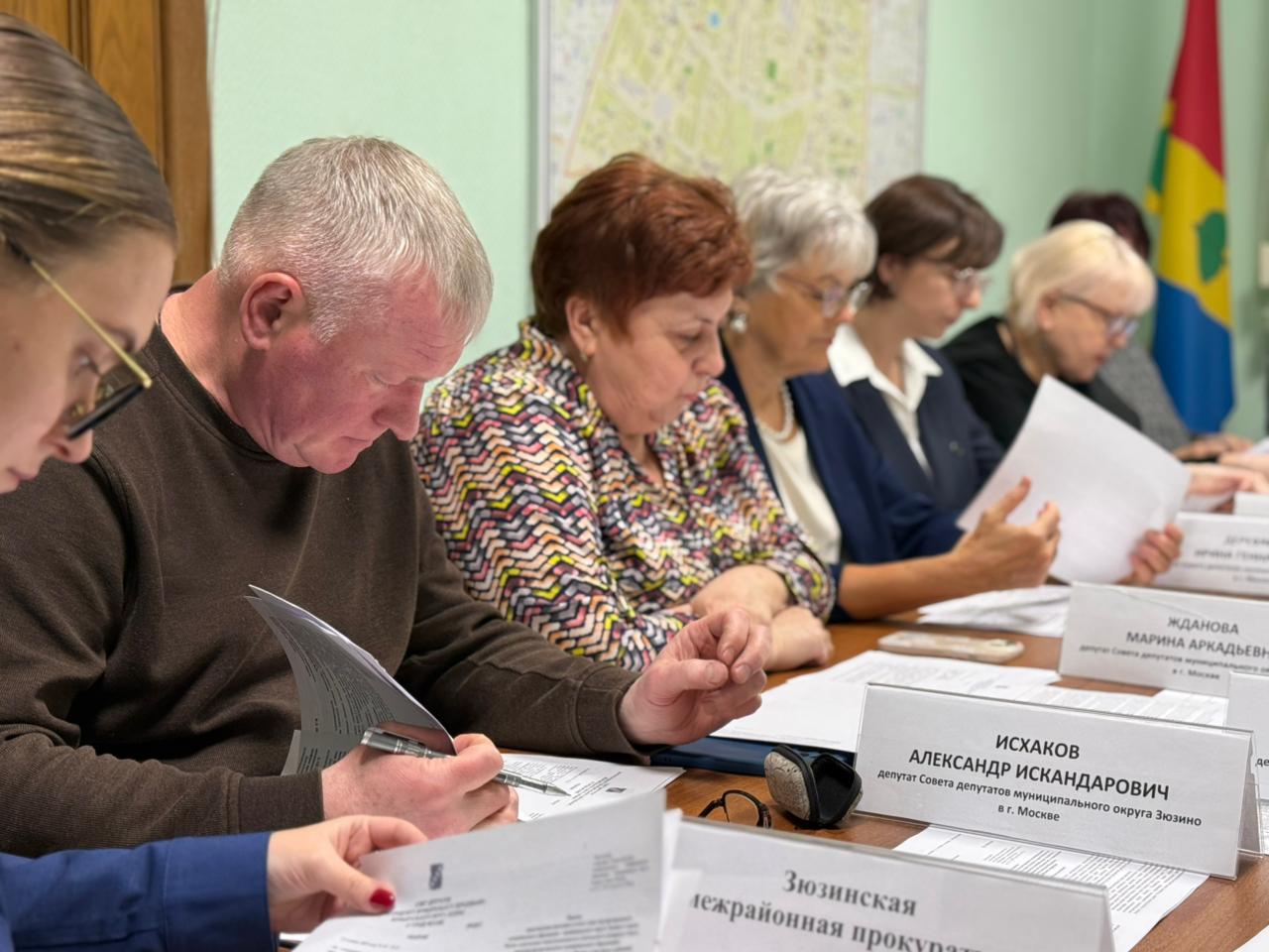 На заседании присутствовали глава управы Иван Зубынин, представитель Зюзинской межрайонной прокуратуры, представитель Департамента транспорта. На встрече обсуждались важные организационные вопросы, касающиеся внесения изменений в решения, утверждения порядков и регламентов.