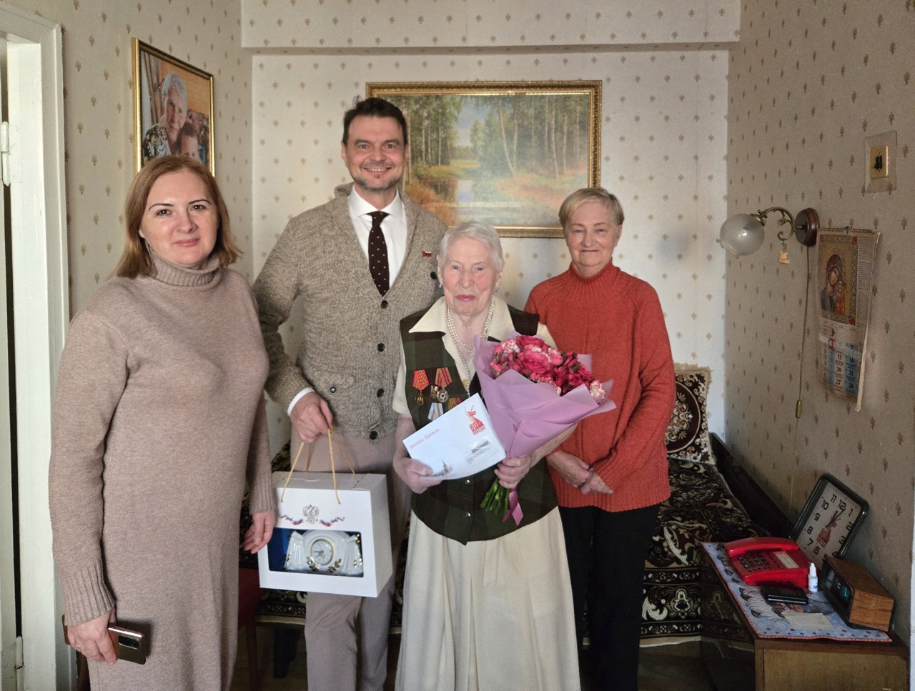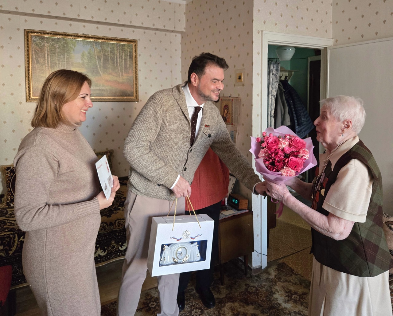 Представители власти вручили имениннице подарки и конверт с поздравлением от Президента России Владимира Путина, пожелали жизненной энергии и крепкого здоровья.