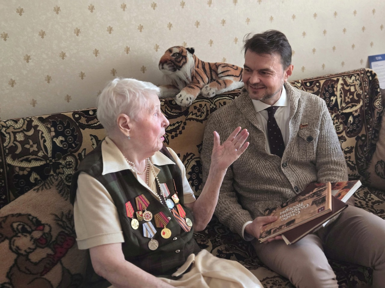 Глава муниципального округа Хамовники Алексей Васильев вместе с представителями управы Еленой Дородновой и районного Совета ветеранов Александрой Крыловой поздравили с 95-летием жительницу Хамовников, ветерана Великой Отечественной войны Антонину Дмитриевну.