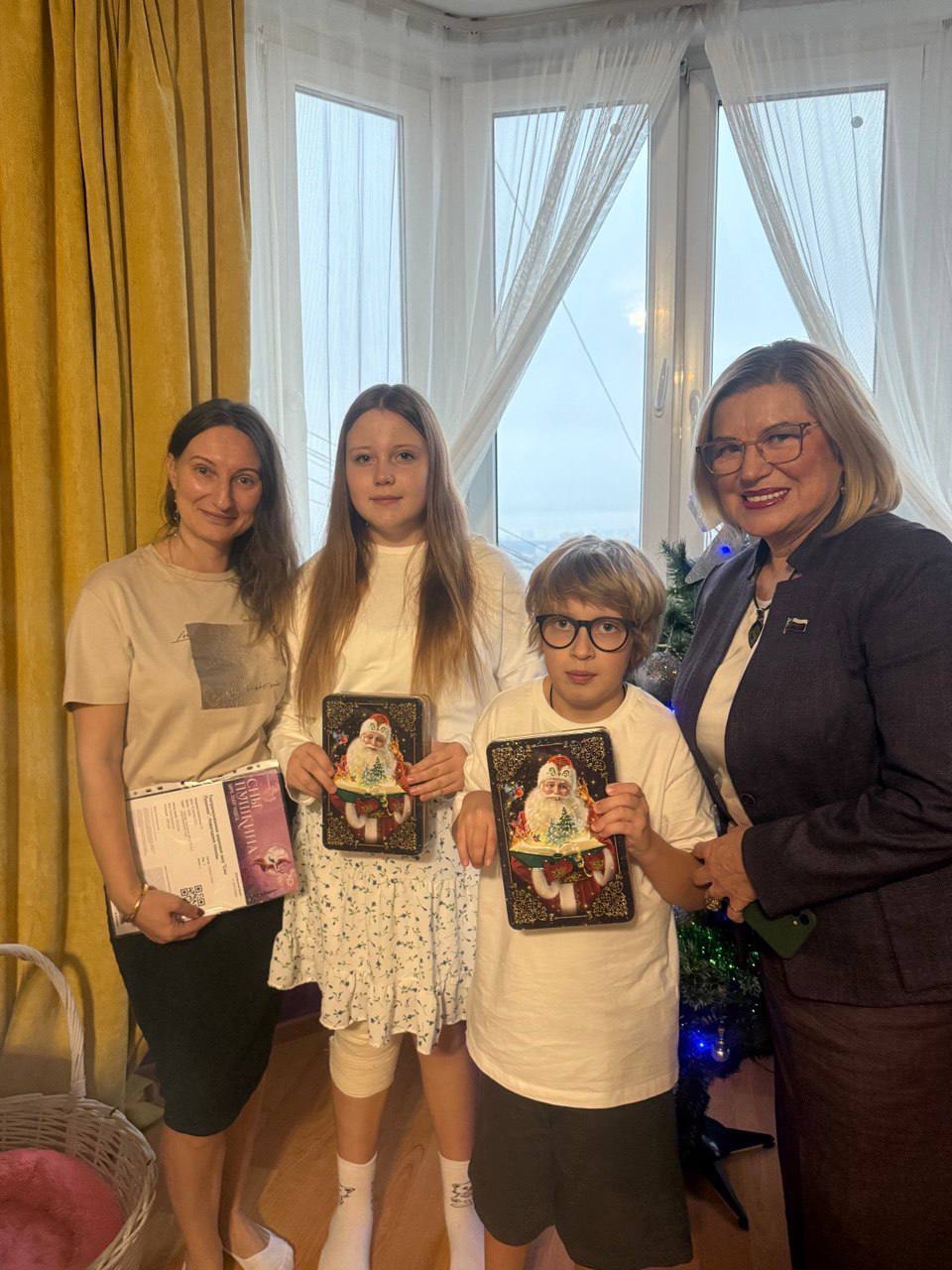 «Очень тронуло знакомство с многодетной семьей, в которой растут девять детей. Кто-то уже ходит в институт, кто-то учится в школе. Каждый ребёнок развитый, общительный, вежливый – невероятно тёплое ощущение от встречи. В доме – уют и чистота. И несмотря на то, что квартира небольшая, у каждого ребёнка есть свой любимый уголок для занятий и личных дел. Вручили сладкие подарки и билеты на новогоднее представление «Сны Пушкина». Пусть Новый год подарит этой семье здоровье, тепло, спокойствие», – отметила Любовь Абдулина.