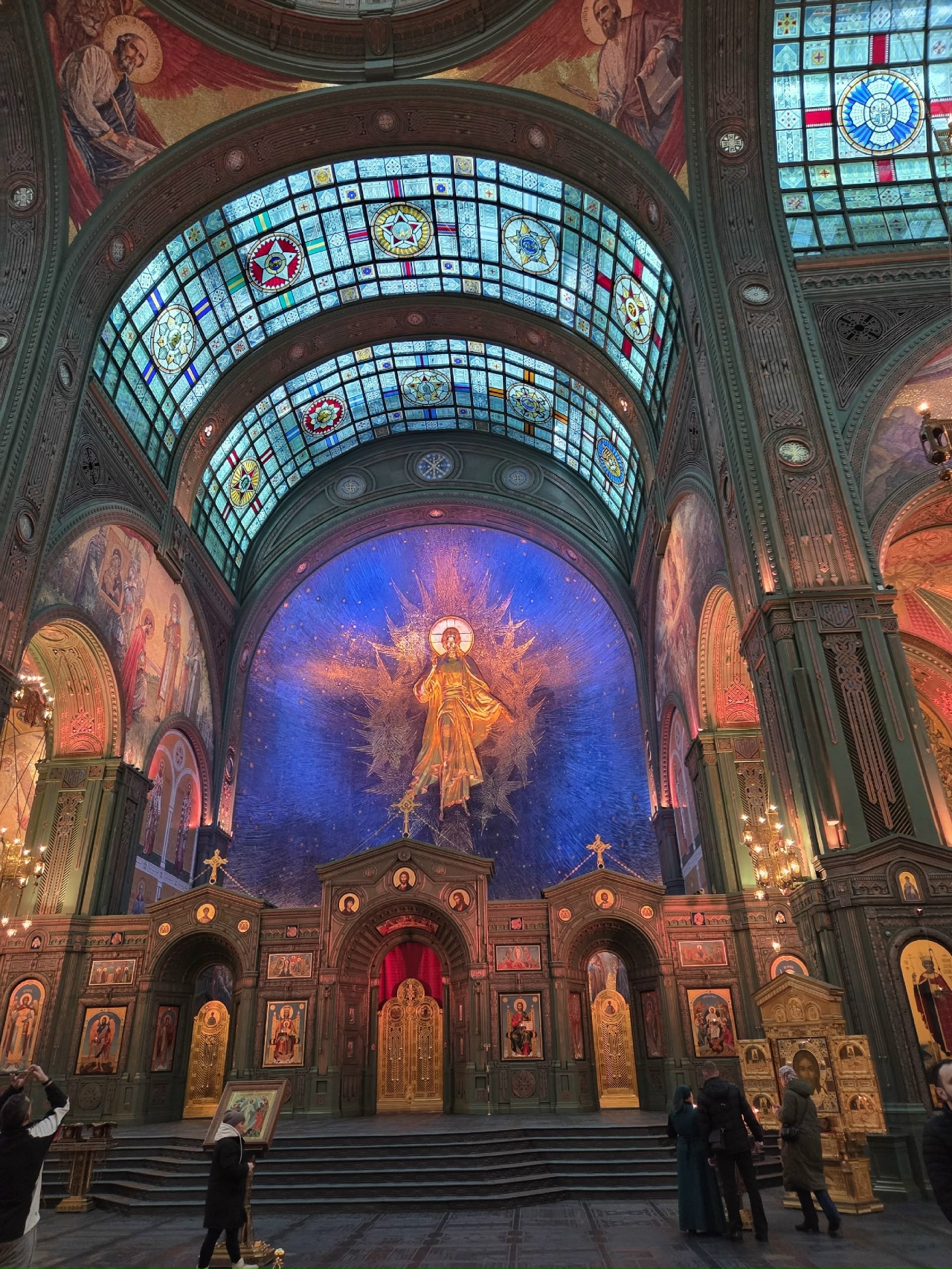 Также участники посетили Главный Храм Вооружённых Сил РФ, Патриарший собор Воскресения Христова. Храм был построен в честь 75-летия Победы в Великой Отечественной войне, он необыкновенно красив, украшен мозаичными росписями. В иконостасе – 48 икон, именно столько месяцев длилась война.