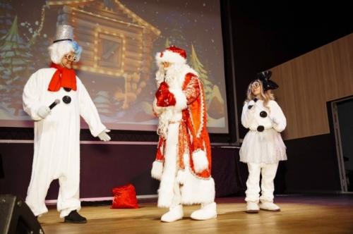 До начала представления аниматоры, одетые в костюмы Ёлки, Снежинки, Снегурочки и Деда Мороза, проводили для детишек интерактивную развлекательную программу с конкурсами, загадками и танцами, а в конце программы маленькие жители района и аниматоры собрались в большой единый хоровод и дружно направились в зал.