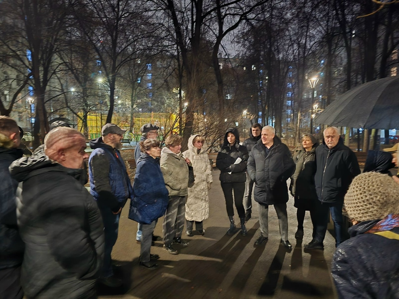Глава муниципального округа Дорогомилово Харис Минажетдинов принял участие в обходе территории района главой управы Сергеем Золотаревым. Активное участие несмотря на ненастную погоду приняли жители первого корпуса дома № 26 по Кутузовскому проспекту. Жильцы озвучили свои проблемы, в основном задавались вопросы по содержанию дворовой территории и набережной Тараса Шевченко.
