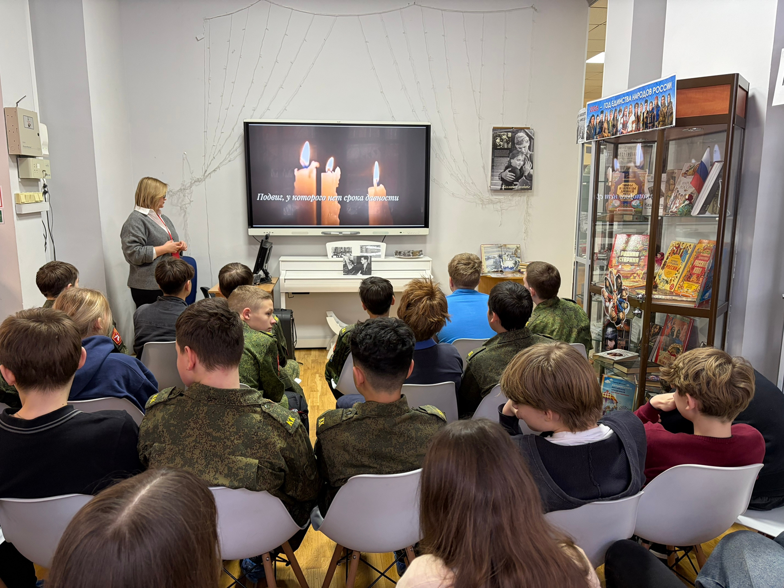 Ведущий мероприятия напомнил присутствующим о мужестве ленинградцев, «Дороге жизни» и дневнике Тани Савичевой – символе блокадной трагедии. В зале звучали стихи Ольги Берггольц и Юрия Воронова, демонстрировались документальные кадры. Особой ценностью стала встреча с ветераном специальной военной операции, военным врачом Максимом Тимаковым. Он поделился своими размышлениями о преемственности подвига поколений. Также в формате видеообращения к мероприятию присоединились учащиеся школы № 18 города Стаханова (ЛНР).