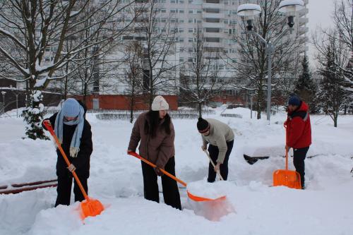 Нина Калькова приняла участие в акции по очистке территорий медучреждений от снега