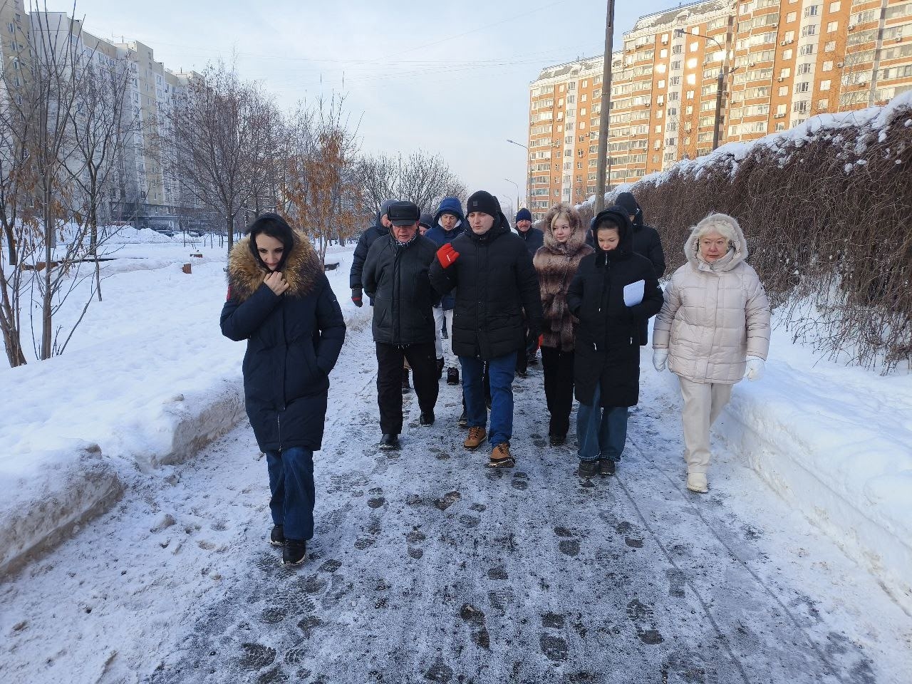 Глава муниципального округа Выхино-Жулебино Нина Калькова присоединилась к еженедельному обходу района. Участие в мероприятии также приняли глава управы Никита Орешкин, заместитель главы управы Юрий Холоня, исполняющий обязанности руководителя ГБУ «Жилищник Выхино района «Выхино-Жулебино» Яков Ципляков, представители управляющей компании и молодёжной палаты, активные жители района.