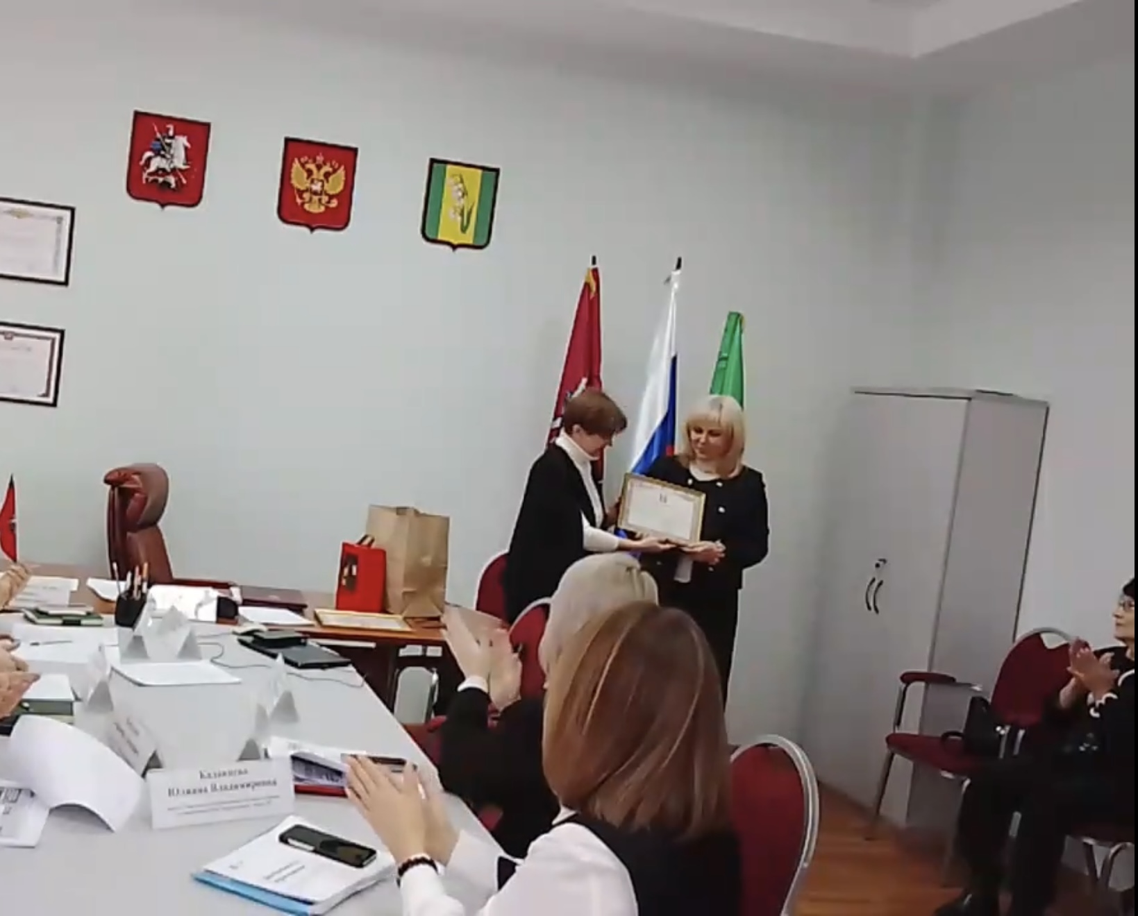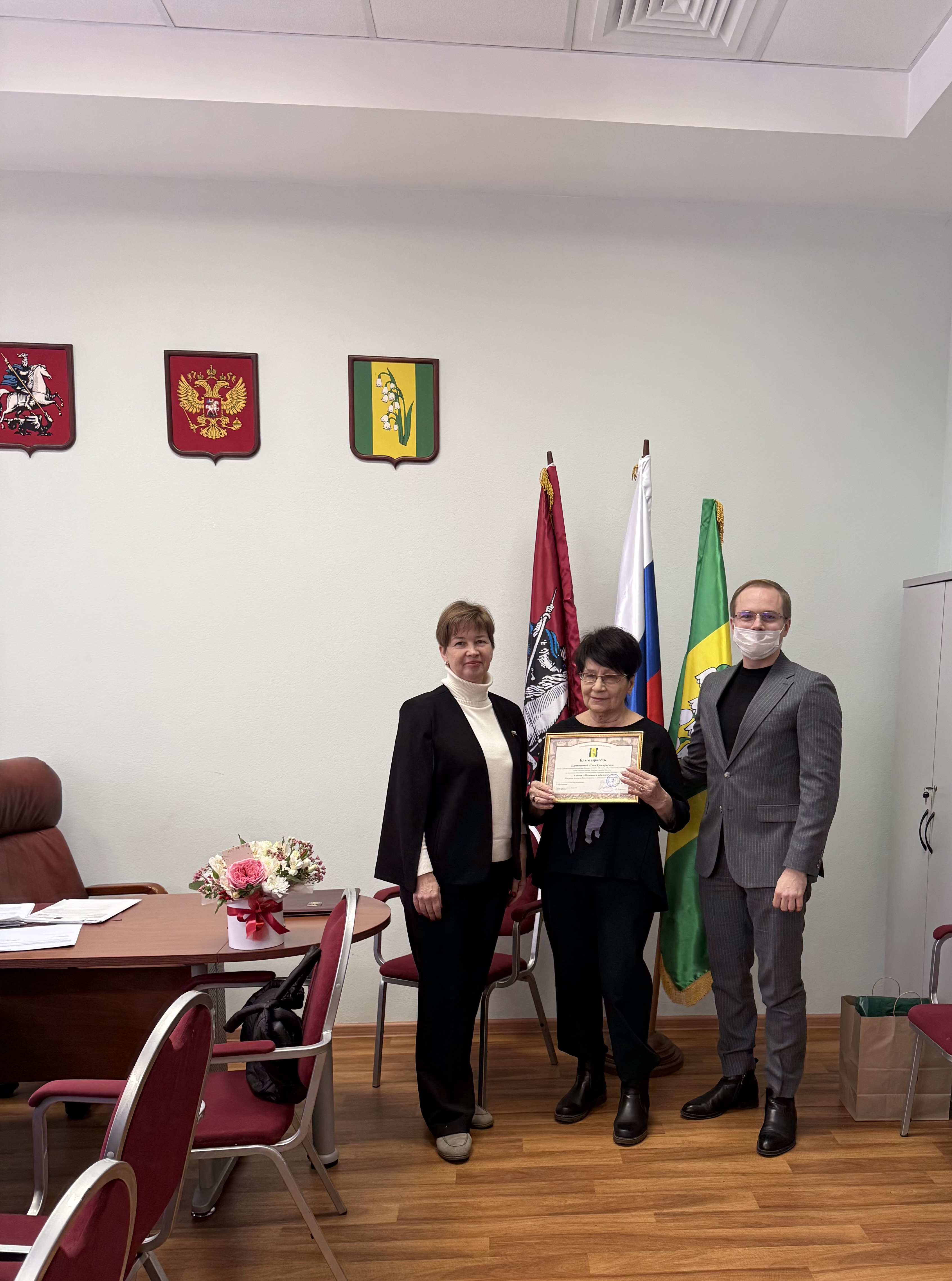 Перед началом заседания глава муниципального округа Куркино Марина Дичева вместе с главой управы Денисом Таракановым вручили благодарности главе администрации Надежде Лесиной-Симоновой за хорошую работу и активное участие в общественной и волонтёрской деятельности в районе и члену районного Совета ветеранов, общественному советнику главы управы Нине Карташовой за активное участие в общественной жизни района и в связи с 80-летним юбилеем.