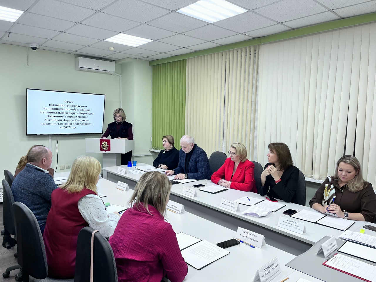 На заседании рассмотрено семь вопросов. В частности, депутаты заслушали отчёты о результатах деятельности за 2025 год главы муниципального округа Бирюлево Восточное Ларисы Антоновой, руководителя аппарата Совета депутатов Марины Кузиной, председателя Комиссии по противодействию коррупции Хариса Ильясова.