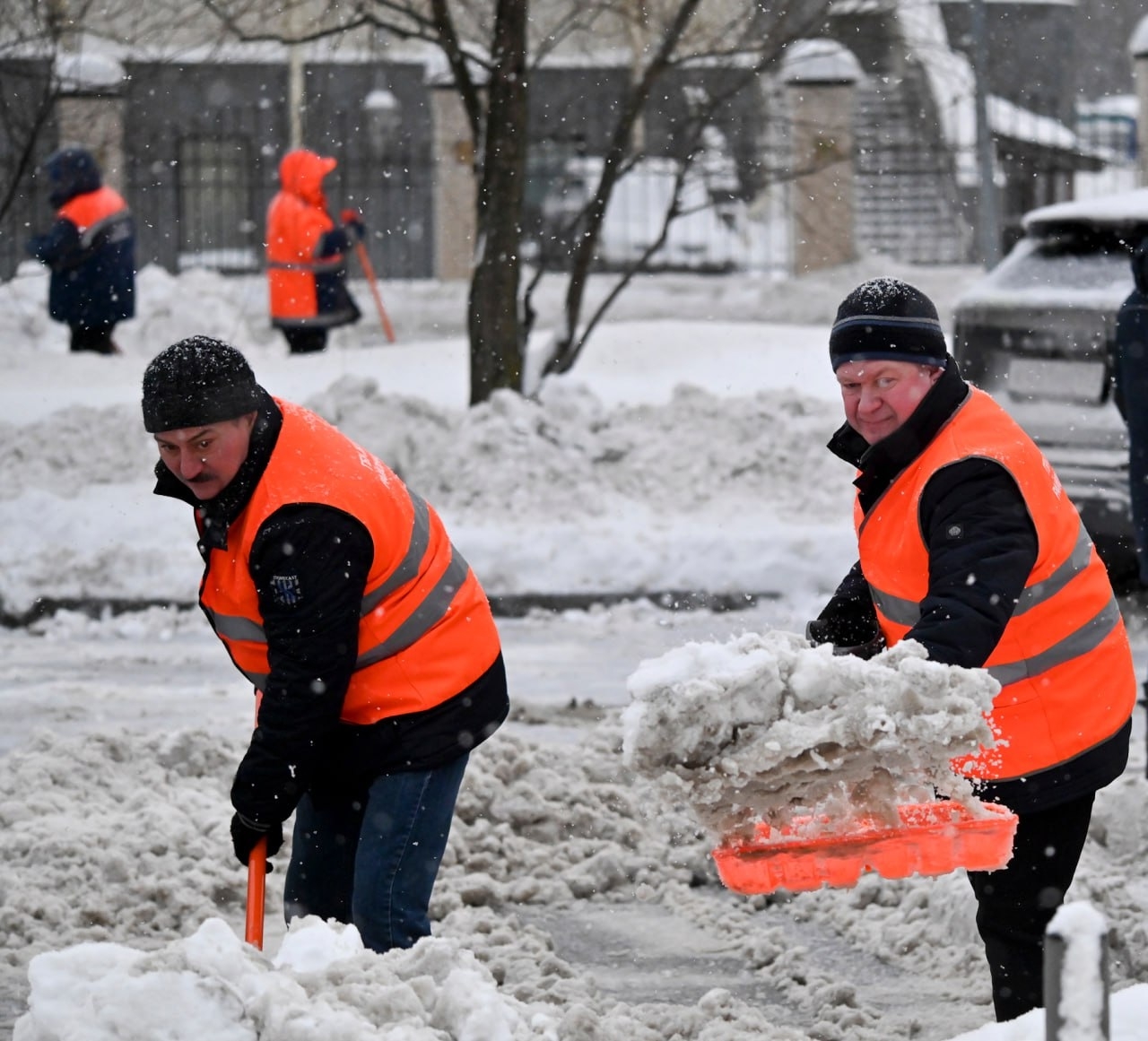 К борьбе с последствиями снегопада также присоединились представители городских организаций жилищно-коммунального и строительного комплексов.