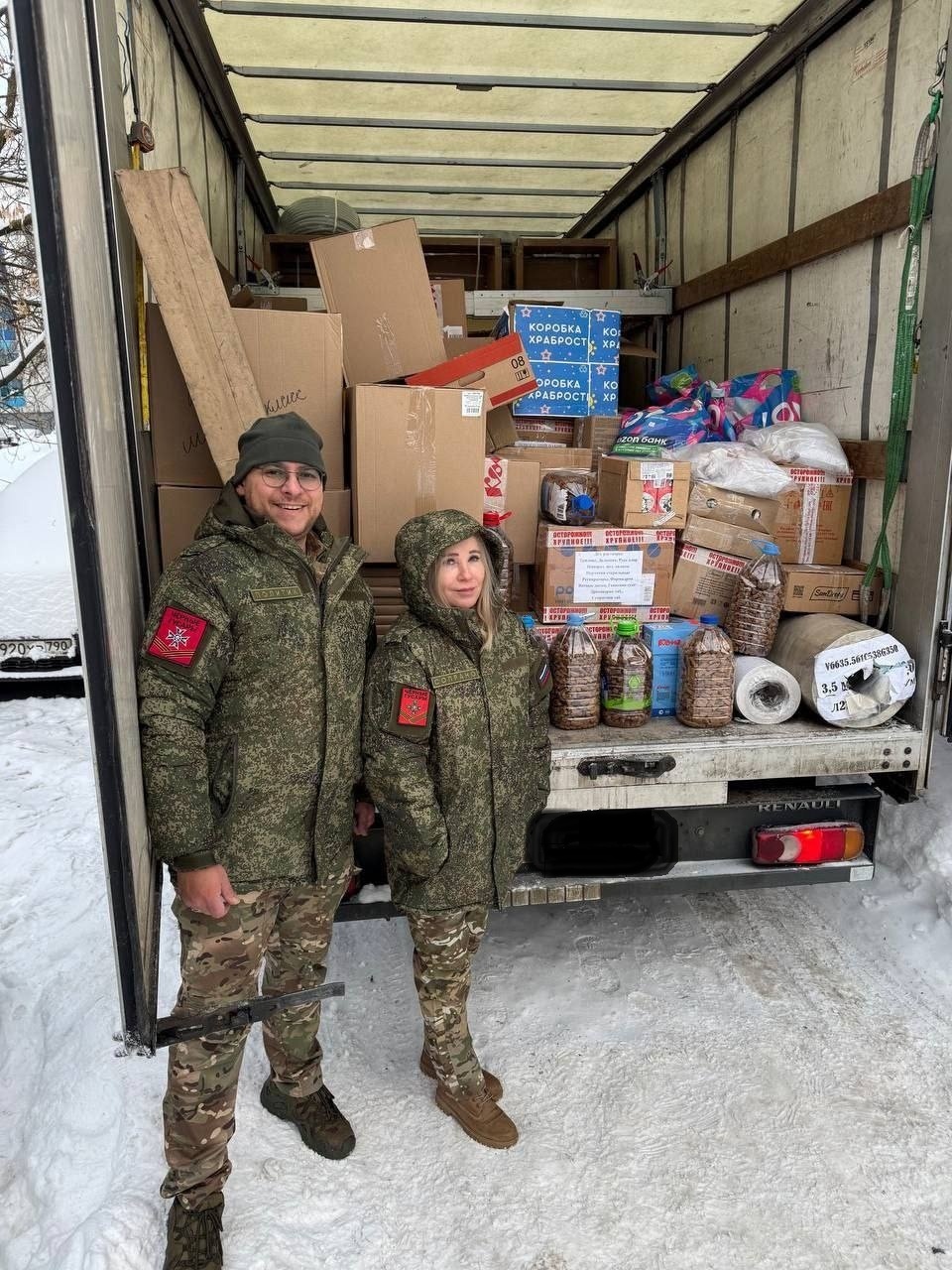 Глава муниципального округа Крылатское Максим Егоров вместе с членом «Боевого братства» Ольгой Петровской отвезли гуманитарную помощь бойцам гвардейской Александрийской бригады «Чёрные гусары».