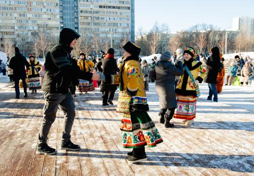 Звучала тематическая музыка, работали мастер-классы, дети и взрослые с упорством художников расписывали матрёшек и самовары, мастерили обрядовых кукол, дети фотографировались с огромными ростовыми куклами. Молодёжная палата района вместе с аниматорами организовали разнообразную интерактивную программу. Для гостей работала полевая кухня с гречневой кашей и блинами, проходили старинные игры с мячом, верёвкой и палками («сторож», «ужище», «шибиряйка»), состоялся зажигательный флешмоб, который объединил жителей всех возрастов.