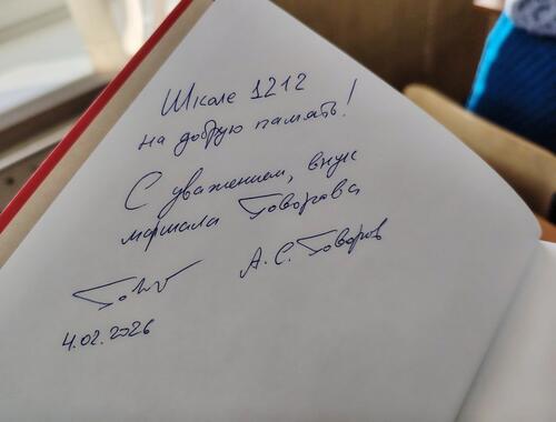 В рамках цикла мероприятий «Память героев» учащиеся школы №1212 Щукино встретились с Алексеем Говоровым, внуком Маршала Советского Союза Леонида Говорова и вице‑президентом Фонда памяти полководцев Победы. Встреча состоялась при содействии Совета депутатов и главы муниципального округа Щукино Марии Ким.