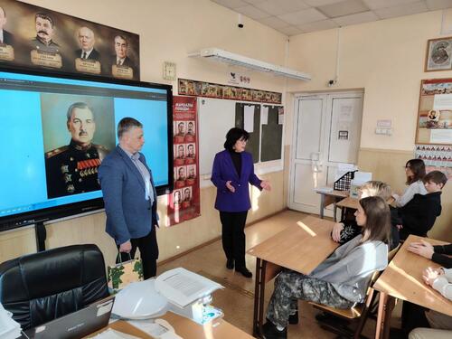 В подарок школе Алексей Сергеевич передал книгу Алексея Кирносова «Ни дня без Победы», рассказывающую о боевом пути маршала Говорова. Экземпляр пополнит школьную библиотеку и будет использован на уроках мужества и внеурочных занятиях по истории.