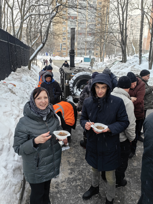 Также к уборке снега активно подключились и жители района. Активисты очистили пешеходные зоны, лестницы, придомовые территории, входные группы и подходы к учреждениям, активистов субботника и всех желающих угощали горячим чаем и вкусной кашей.