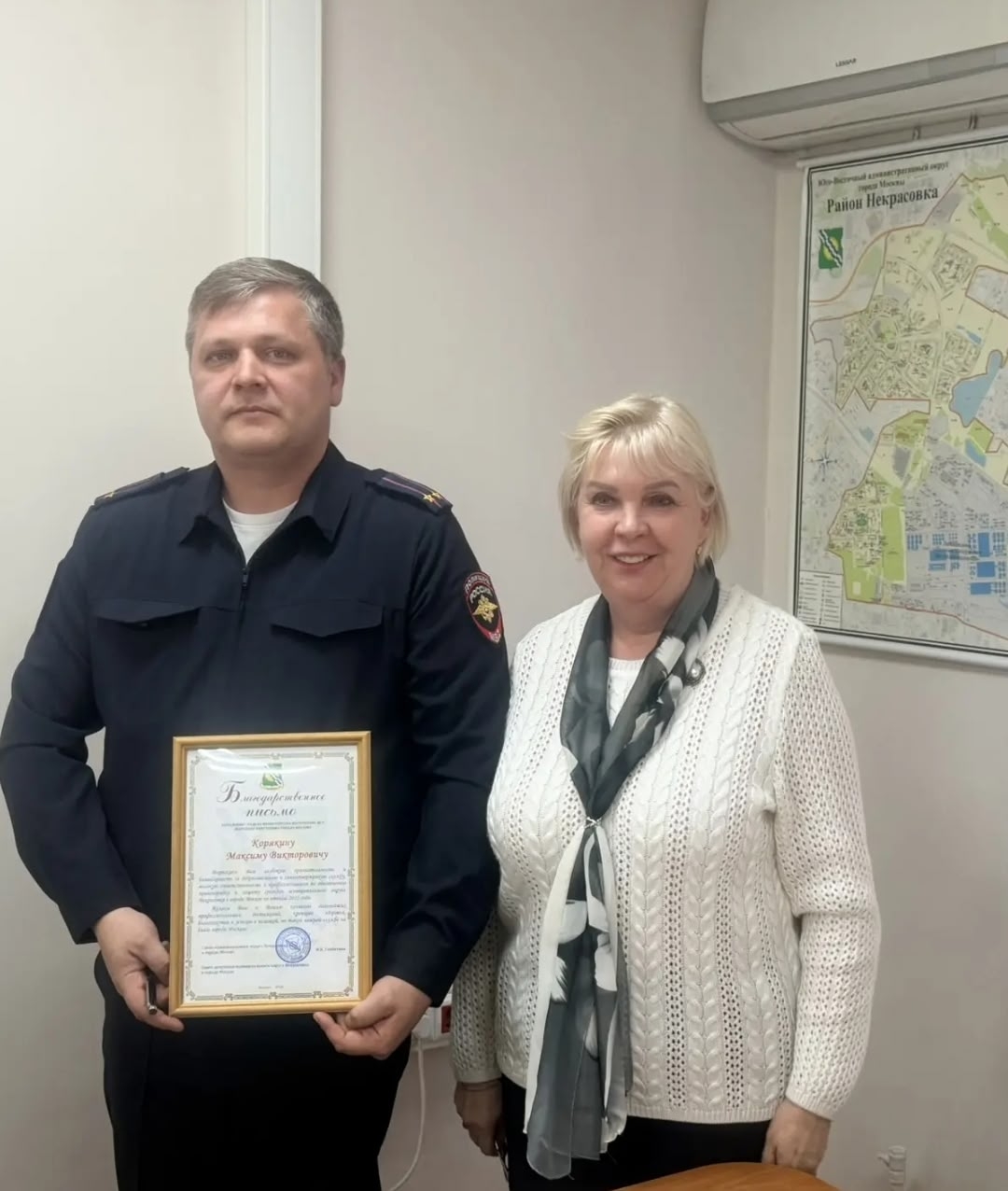 Депутаты вручили благодарственное письмо за активное взаимодействие и успешную работу сотрудников полиции.