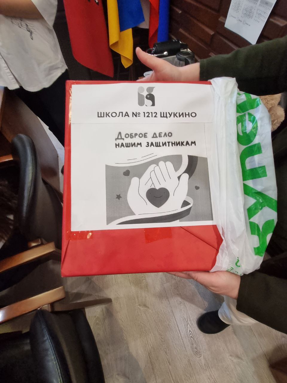 Самым трогательным моментом стали послания, которые дети заранее подготовили для военнослужащих. Вместе с Марией Ким и наставниками ребята вложили письма в коробки и запечатали их специальными наклейками.
