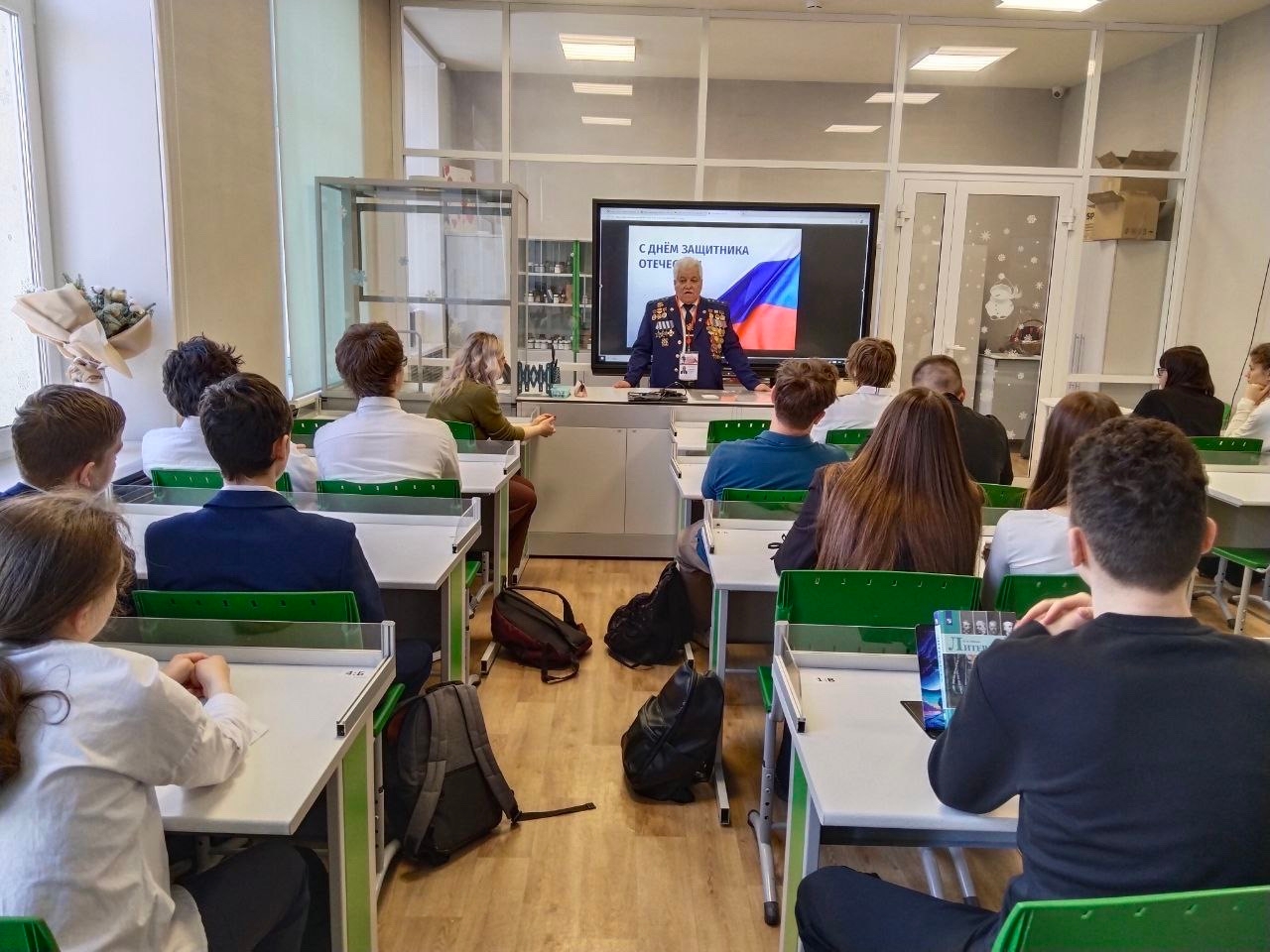 В школе района Рязанский прошёл урок мужества с участием ветерана боевых действий