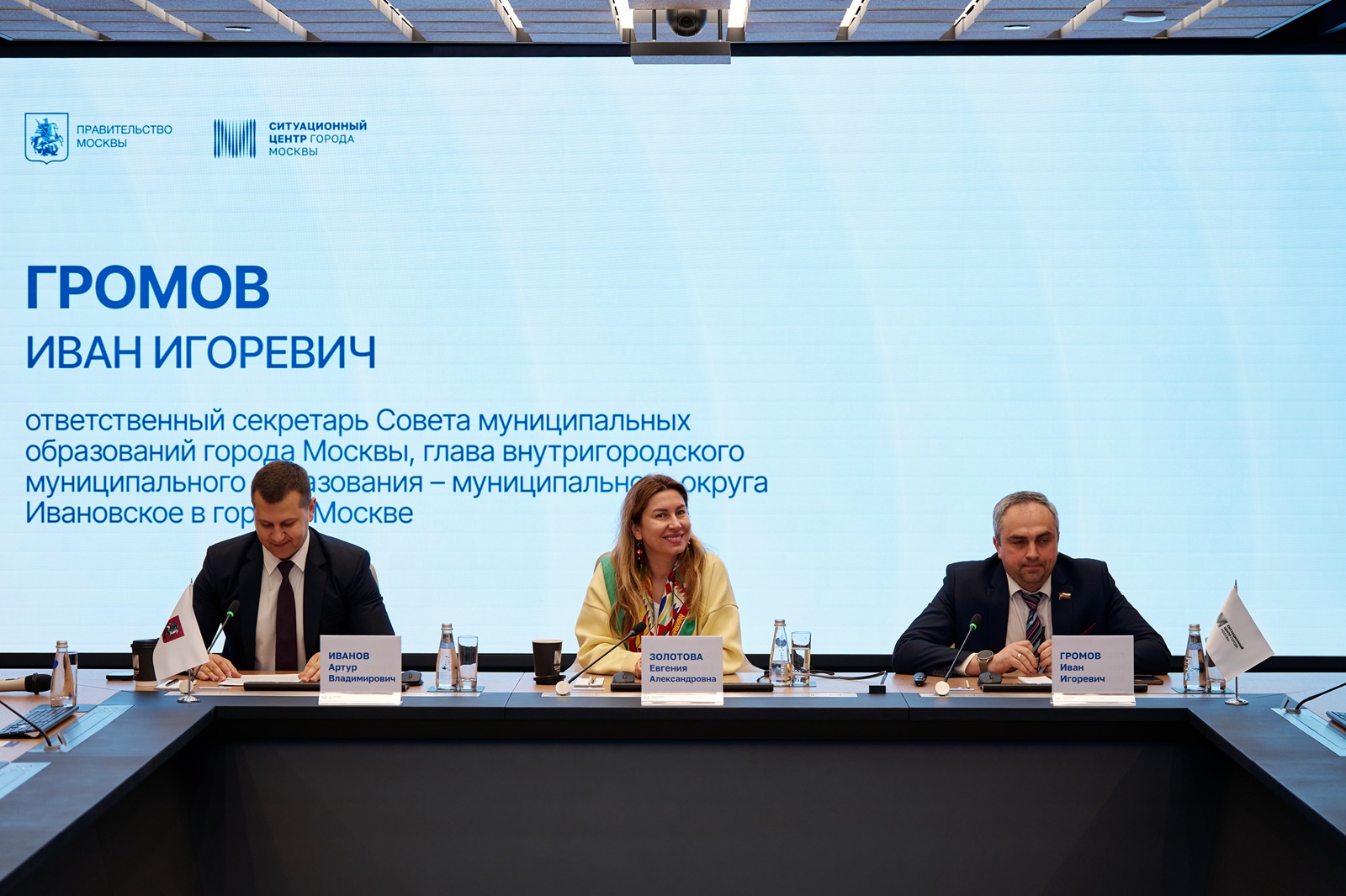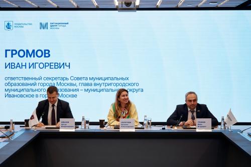 От Совета муниципальных образований Москвы во встрече приняли участие Иван Громов, Михаил Попков, Александра Игнатьева, Харис Минажетдинов, Наталья Лебедева, Ирина Гришина, Антон Власенко и Карен Аперян. Модератором встречи выступил заместитель отдела практик и тренингов ГБУ «Городской центр профессионального и карьерного развития» Артур Иванов.