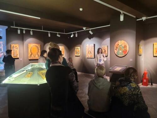 Участники экскурсии ознакомились с древними греческими, византийскими иконами, иконами «бунташного» XVII века, а также проследили за ходом истории через работы мастеров того времени. Помимо этого, в музее выставлены русские иконы, созданные ещё в XIV веке, древнерусское шитьё и даже эфиопское христианское искусство. Всего собрано 4500 экспонатов.