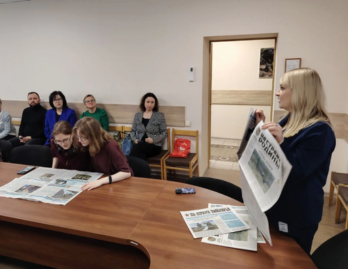 Визит начался с просмотра фильма об истории и современной жизни издания, которое вот уже 102 года является главным летописцем армии и флота России. О тонкостях профессии рассказали военные корреспонденты Григорий Онипер и Павел Рыльков. Участники узнали о специфике работы на передовой и командировках в зону боевых действий. В ходе живого диалога ребята поделились впечатлениями, какими качествами, по их мнению, должен обладать военный корреспондент: мужество, выдержка, честность и готовность выполнять свой долг в любых условиях.