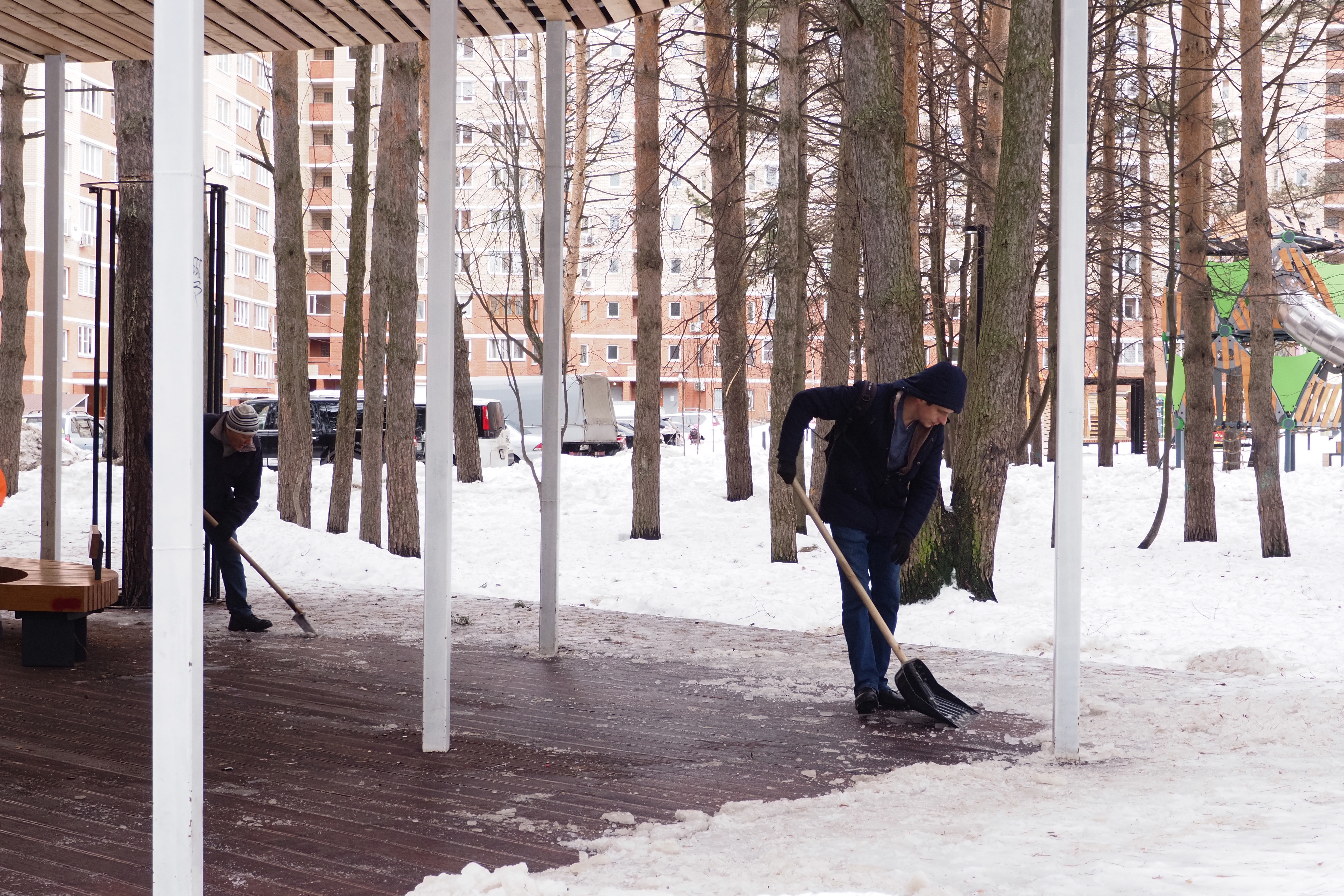 Среди местных жителей были и такие, кто, увидев, что в сквере началась уборка, сразу присоединились. Житель дома В-30 Пётр Генералов часто гуляет в этом парке, поэтому тут же откликнулся. В бригаду приняли сразу, лопату выдали, и, очистив одну обледеневшую дорожку, он рассказал, почему согласился помочь. Он признался, что помогать не трудно и он это делает регулярно.
