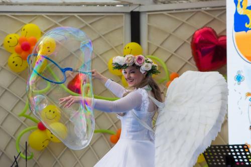 Для гостей праздника была подготовлена концертно-развлекательная программа, интерактивное «Шоу мыльных пузырей», народное детское караоке, аква-грим, шаромоделирование, сувениры и мороженое.