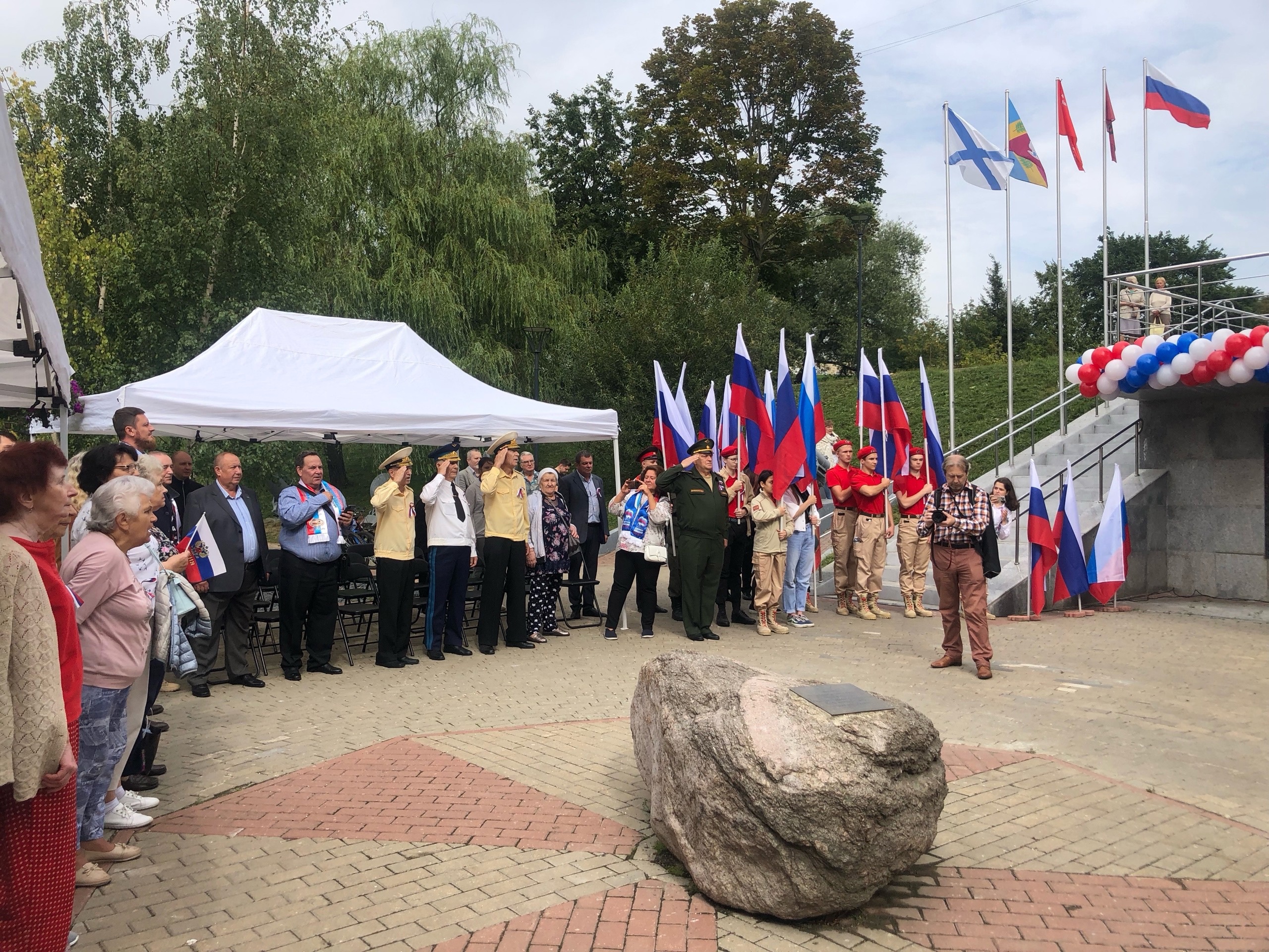 Депутаты, ветераны, кадеты и юнармейцы, жители района собираются возле памятного знака землякам, погибшим в период Великой Отечественной войны, чтобы именно отсюда, отдав дань памяти воинам-победителям с гордостью пронести шестиметровый флаг страны по любимому району!