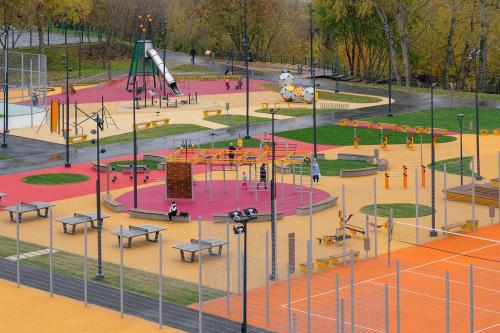 Для любителей активного образа жизни сделали 26 спортивных площадок, включая скейт-парк, памп-трек, многофункциональные площадки для командных видов спорта, хоккейную коробку, которую в тёплое время года можно использовать для игры в мини-футбол, и зоны для воркаута. Кроме того, в спортивной зоне в районе 21-го километра МКАД оборудовали одно большое и четыре тренировочных футбольных поля.