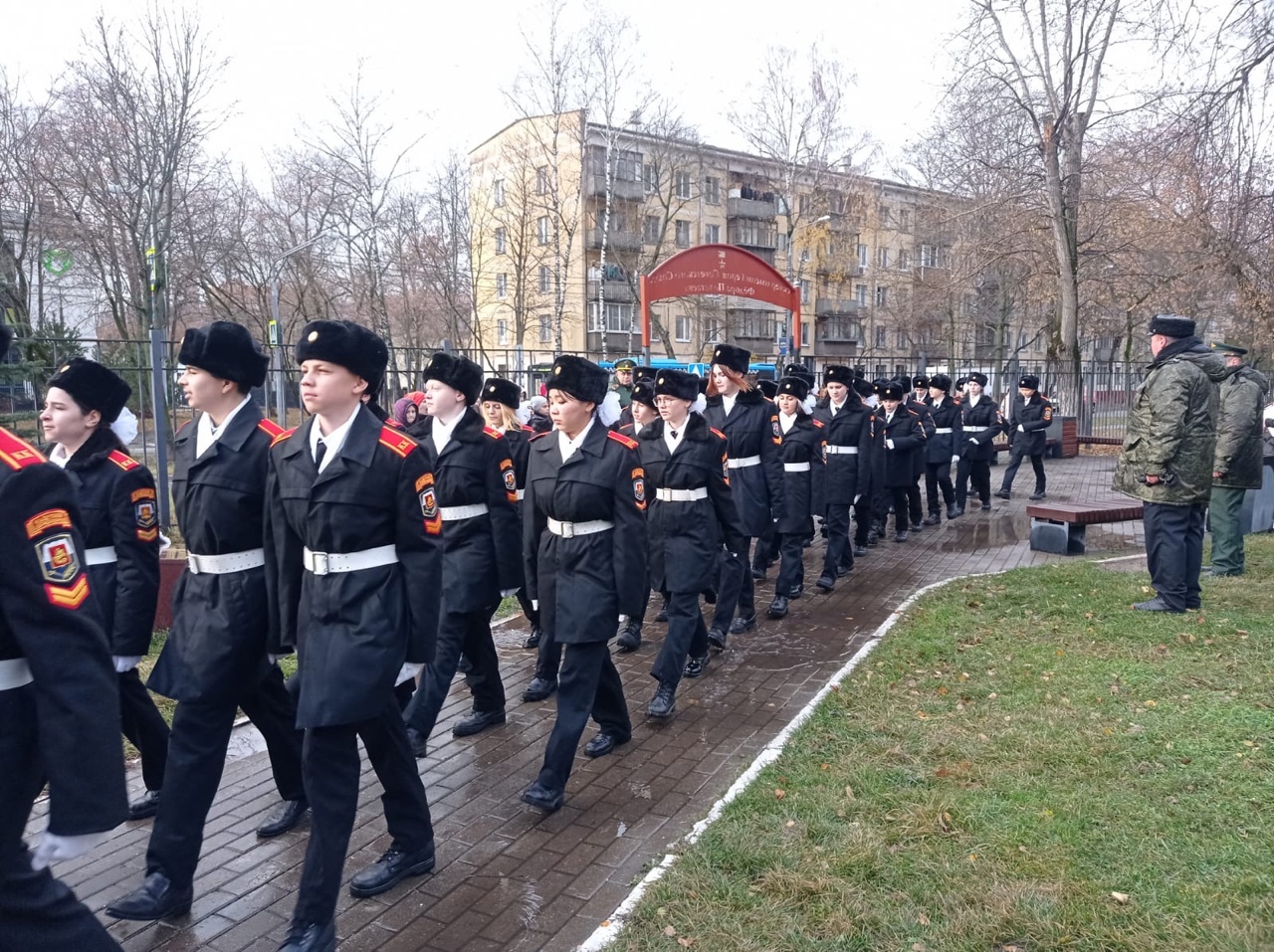 В память о тех событиях в сквер имени Героя Советского Союза Федора Полетаева пришли кадеты ГБОУ Школа 2090 и юнармейцы. Участие в торжественном марше, посвящённом историческому параду 1941 года на Красной площади 7 ноября, стало традицией у московских кадет. И родители, и ребята, и педагоги с волнением ждут этого события, готовятся. Кадеты должны чувствовать свое единство, понимать важность исторических фактов и традиций. С приветственной речью к присутствующим обратился участник Великой Отечественной войны Кирсанов Виктор Иванович и рассказал о героическом подвиге москвичей.