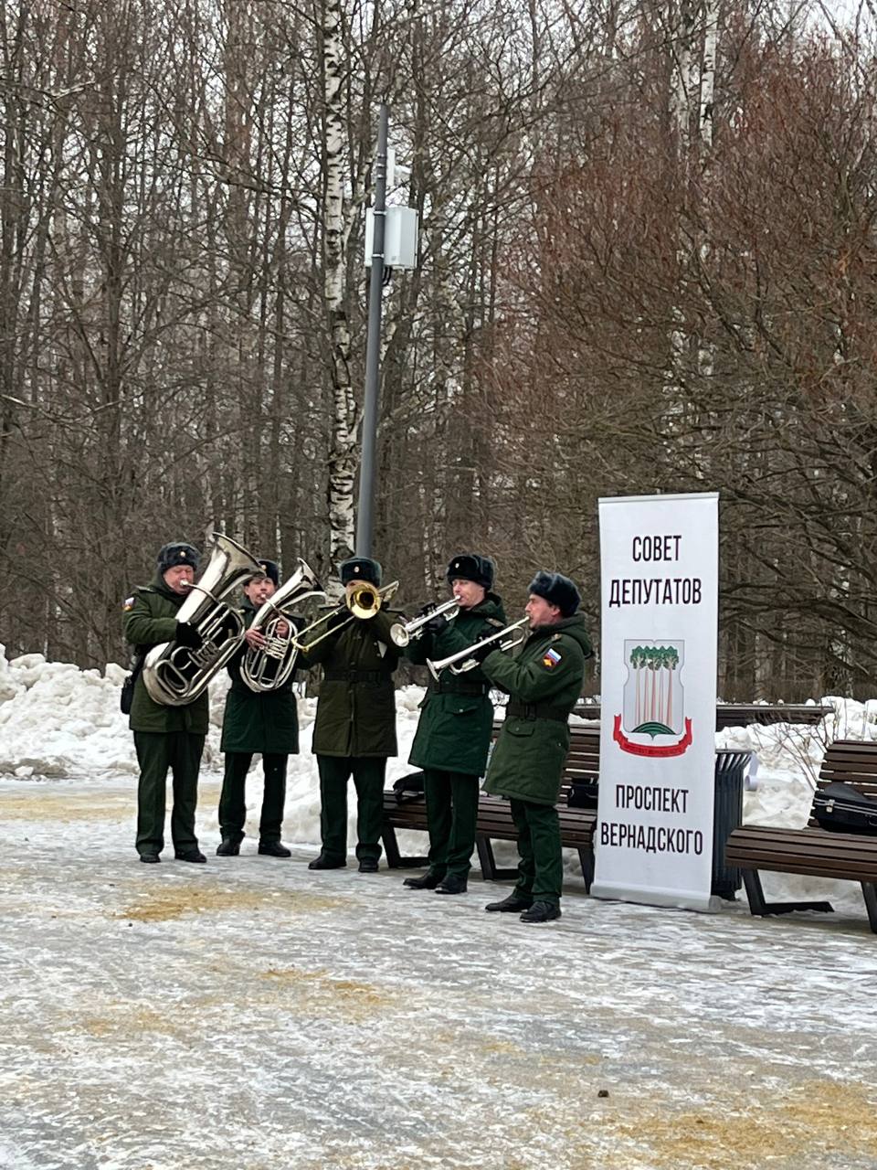 В мероприятии приняли участие депутаты Совета депутатов муниципального округа Проспект Вернадского Ольга Фомина, Наталия Пойда, учащиеся кадетского класса общеобразовательного учреждения № 1541 и жители района.