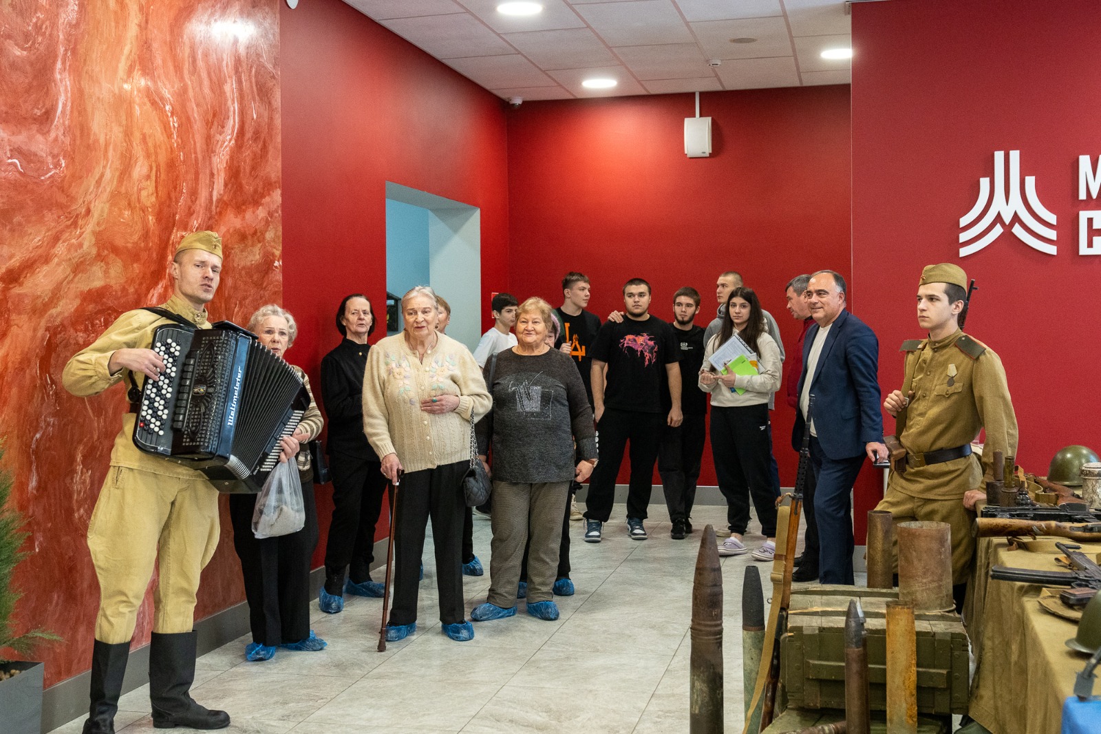 Дорогим ветеранам был показан спектакль. В холле училища олимпийского резерва № 1 расположилась выставка оружия Великой Отечественной войны со станковым пулемётом «Максим», и каждый мог сфотографироваться и подержать в руках экспонаты. На протяжении всей выставки звонко играл баянист и сопровождал ветеранов до зала.