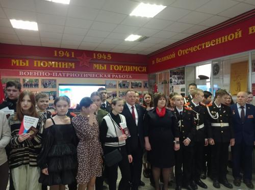 В музее боевой и трудовой славы в рамках гражданско-патриотической акции, посвящённой Дню воинской славы, а именно, 81-й годовщине разгрома немецко-фашистских войск под Ржевом, заместитель начальника отделения по вопросам миграции ОМВД России по Рязанскому району г. Москвы Киреева Е.П. вручила паспорта юным кадетам ГБОУ «Школа № 2090» и призвала участников церемонии беречь этот документ как частицу Родины.