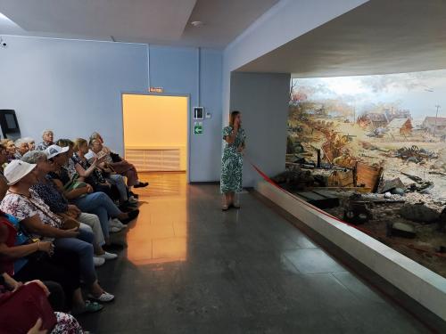 Далее экскурсия продолжилась в филиале музея Победы – ставки Сталина, где ветераны осмотрели экспозиции, посвящённые поездке Верховного главнокомандующего И.В. Сталина на Западный и Калининский фронты, которая состоялась 2-5 августа 1943 года.