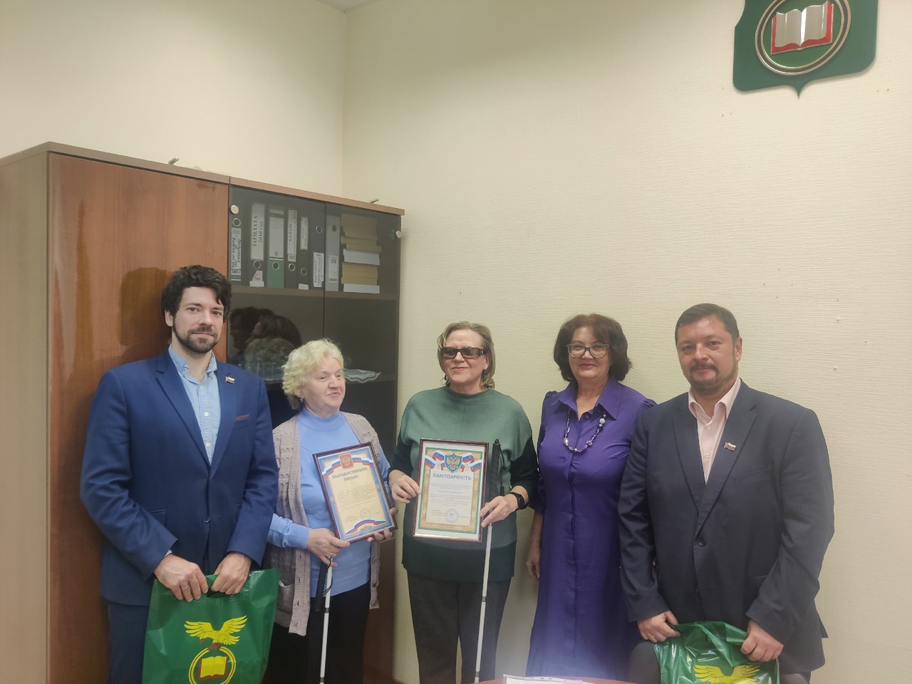 Депутаты муниципального округа Обручевский вручили благодарности активным членам общества слепых