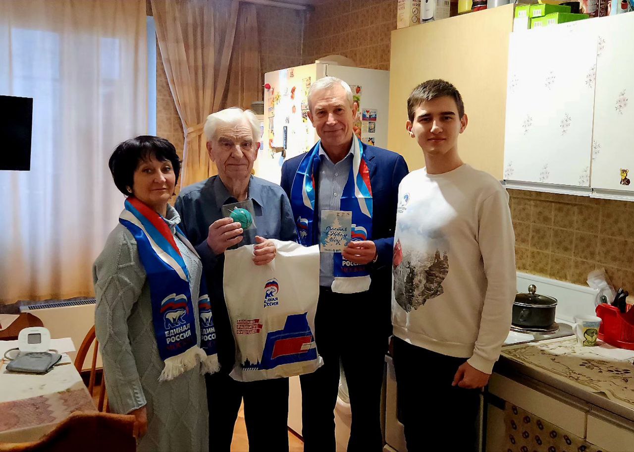 В рамках акции «С Новым годом, ветеран» глава муниципального округа Чертаново Южное Александр Новиков, муниципальный депутат, руководитель социальной службы района Наталья Птушкина и представитель общественного движения «Волонтёры Победы» от лица партии «Единая Россия» поздравили с наступающими праздниками ветерана Дмитрия Шохина.