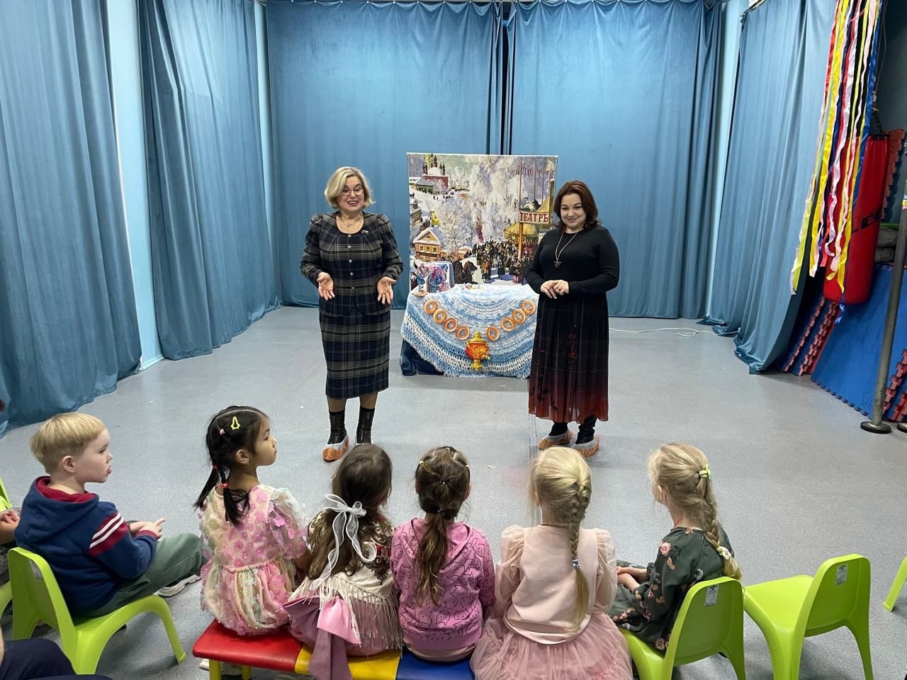 Волшебный спектакль для малышей показал бэби-театр «Мир чудесен». Скоморохи, традиционные игры, кукла-Масленица, ярмарочные гуляния – всё в лучших традициях любимого праздника. Постановка «На добрый привет и добрый ответ» получилась не только весёлой, но и поучительной: любовь и добро победили зло. После спектакля все юные гости смогли угоститься блинами с разными начинками и вкусными пряниками.