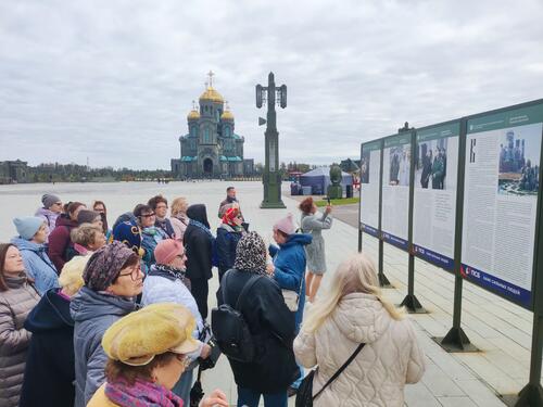 Программа продолжилась посещением главного православного Храма Вооружённых Сил России «Собор Воскресения Христова», строительство которого посвящено ратным подвигам русского народа во всех войнах и приурочено к 75-летию Победы в Великой Отечественной войне. Экскурсанты посетили верхний храм, именуемый в честь Воскресения Христова, и нижний храм, освящённый в честь Святого Равноапостольного Великого князя Владимира. Осмотрели своды, иконы, мозайку, архитектуру, мозаичную фигуру Христа, парящего над главным престолом и окружённого шестикрылыми серафимами, и святыню храма – Спас Нерукотворный.