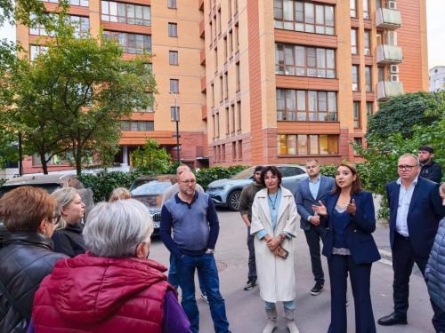 Глава муниципального округа Марьина роща Екатерина Игнатова совместно с главой управы Александрой Фадеевой, заместителем главы управы Василием Найденко, муниципальными депутатами и сотрудниками ГБУ «Жилищник» провели обход территории района по адресу: ул. Тихвинская улица, д. 12.