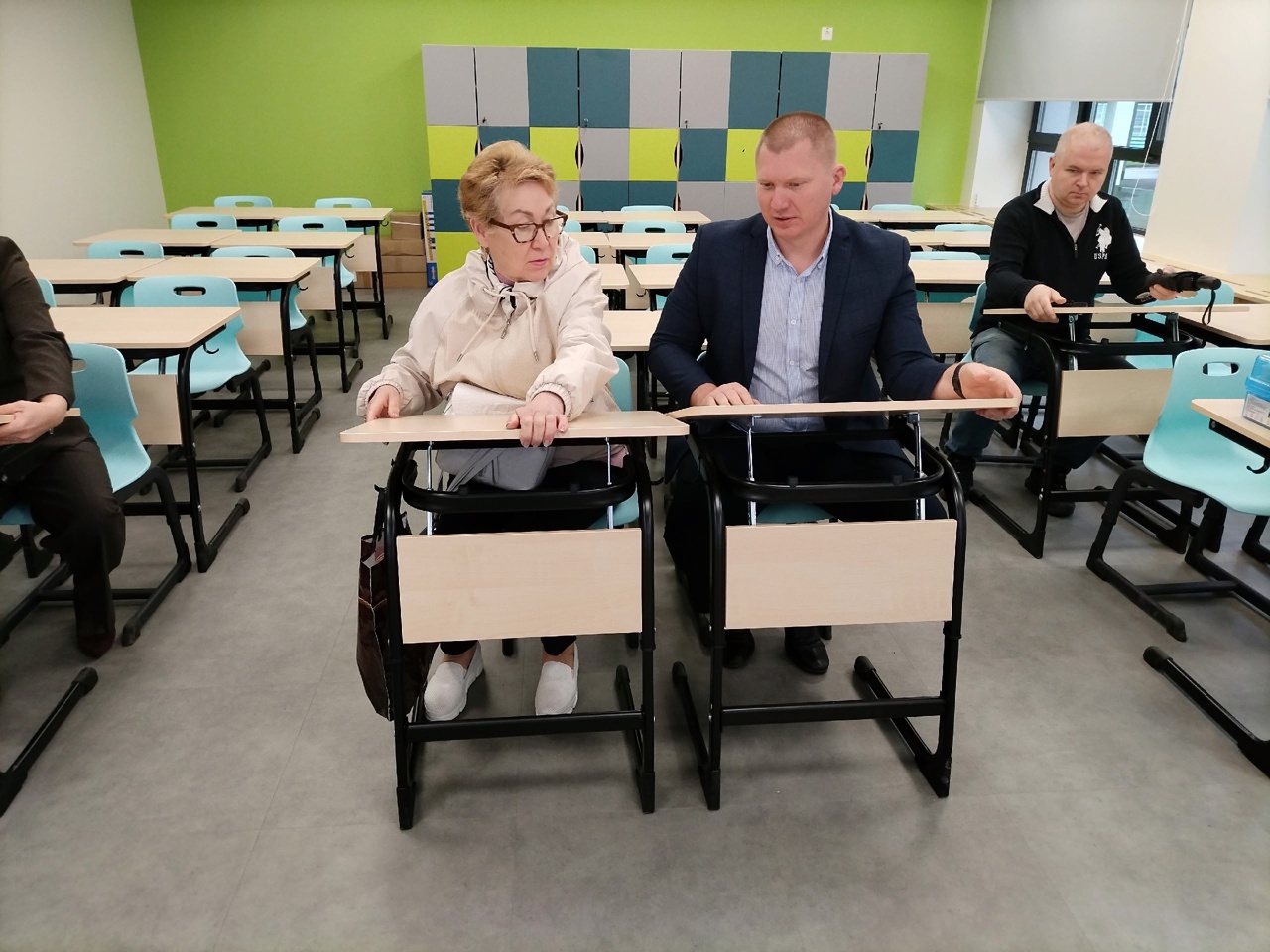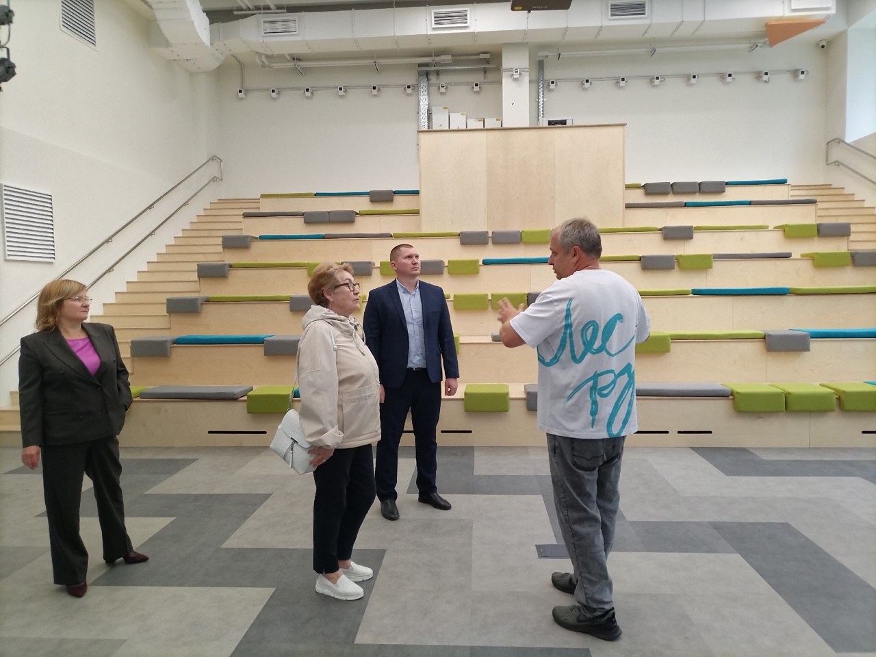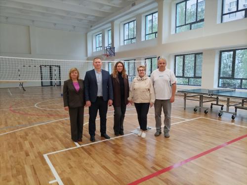 Руководство школы показало гостям обновлённые классы, в которых всё готово для учебного процесса. В новой школе имеются гимнастический, спортивный и актовый залы, комнаты разгрузки, просторные холлы, современные санузлы и столовая. В здании – много открытых пространств и места как для учебы, так и для отдыха детям.