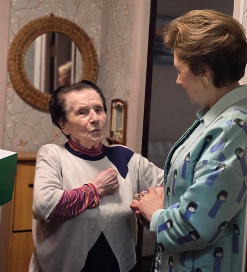 Глава муниципального округа Ясенево Ирина Гришина вместе с заместителем прокурора Черемушкинской межрайонной прокуратуры Максимом Мартыновым поздравила Почётного жителя округа Надежду Михайловну с годовщиной окончания Второй мировой войны. Об этом она рассказала в своём аккаунте ВКонтакте.