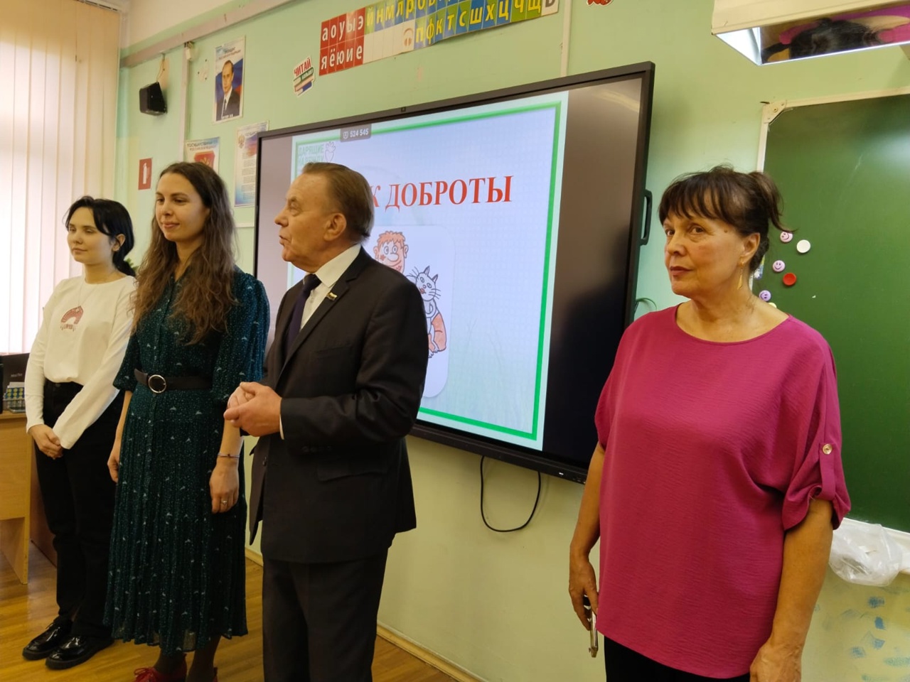 Глава муниципального округа Рязанский Анатолий Евсеев 13 октября принял участие в уроке доброты «Мы в ответе за тех, кого приручили», посвящённом любви и ответственности к животным, для учащихся четвёртого класса школы № 2090 им. Паперника.