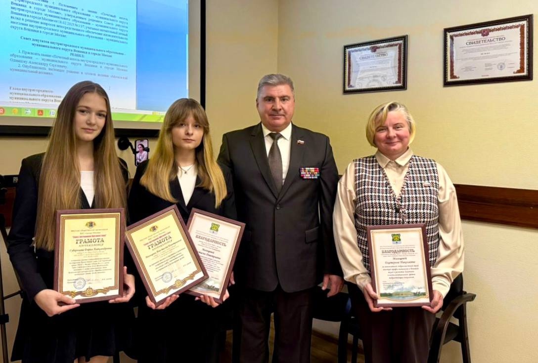 На заседании депутаты торжественно вручили медаль за труды в просвещении заместителю декана юридического факультета Финансового университета при Правительстве РФ А. Жукову, благодарность от Совета депутатов за высокий профессионализм и добросовестный труд заместителю директора школы № 1512, депутату Е. Мальцевой.