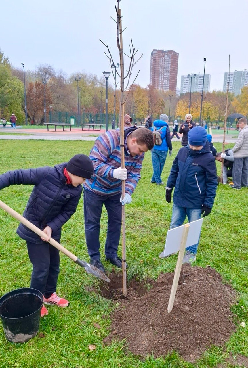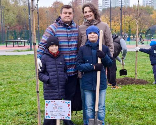 Всего было высажено 20 именных остролистных клёнов, символизирующих силу, заботу и любовь к своим семьям. Район Лианозово представляла семья Александра Мерзликина – активного муниципального депутата, любящего и заботливого отца двоих сыновей. Своё именное дерево семья Мерзликиных посадила вместе, сыновья трудились наравне с отцом. Александр Юрьевич отметил, что они живут рядом с парком, и будут приходить с детьми и ухаживать за своим деревом, наблюдать, как оно растет и крепнет.
