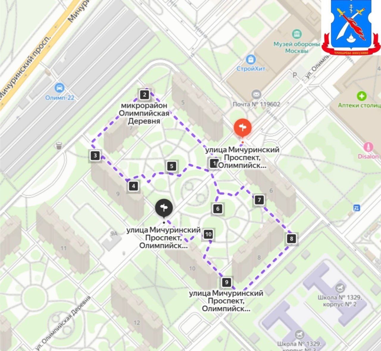 По итогам обхода поставлены задачи привести в надлежащее санитарное состояние прилегающей территории по маршруту следования, произвести обрезку кустарников и деревьев во дворе домов по адресам: ул. Мичуринский пр., Олимпийская деревня, д. 5-10. Также решено оформить обращение от управы в ресурсно-снабжающую организацию по провисающим проводам по адресу: ул. Мичуринский пр., Олимпийская деревня, д. 6.