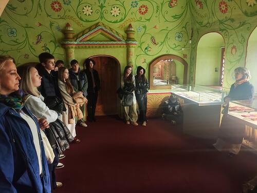 Продолжилась программа посещением музеев Звенигорода. В историко-архитектурном и художественном музее экскурсанты осмотрели интересные экспозиции, увидели экспонаты Звенигородского музея, включая украшенный золотой и серебряной инкрустацией сфероконечный воинский шлем XVI века, времён Ивана Грозного, найденный археологами в 2015 году.