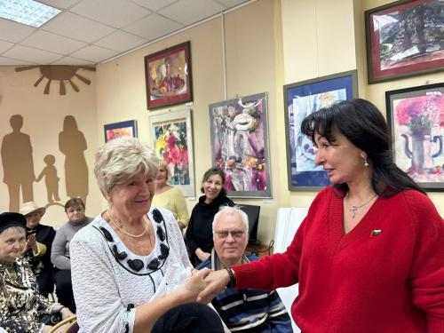 После выступления артистов глава муниципального округа Марьина роща Екатерина Игнатова вместе с муниципальным депутатом, исполнительным секретарём местного отделения партии «Единая Россия» Оксаной Епифановой и муниципальным депутатом, руководителем Центра московского долголетия «Марьина роща» Викторией Кузьминой вручили юбилярам памятные подарки и пообщались в дружеской атмосфере.