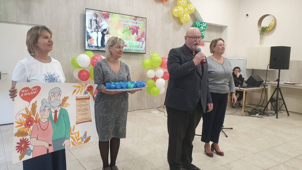 Депутат муниципального округа Люблино Юрий Андрианов совместно с начальником отдела по работе с населением района Люблино Мариной Мамыкиной принял участие в праздничном мероприятии, посвящённом Дню пожилого человека, прошедшем в геронтологическом центре «Люблино».