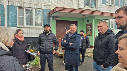 Глава муниципального округа Бибирево Александр Аршанский вместе с главой управы Артёмом Волошиным провели обход территории по адресу: ул. Белозерская, д. 9А.